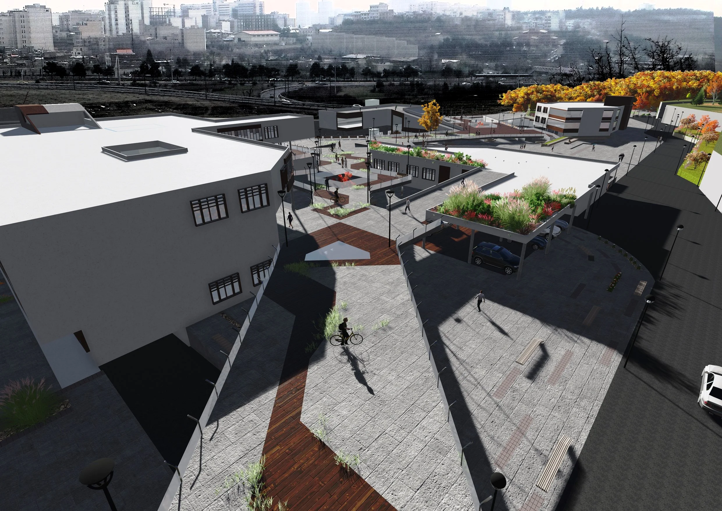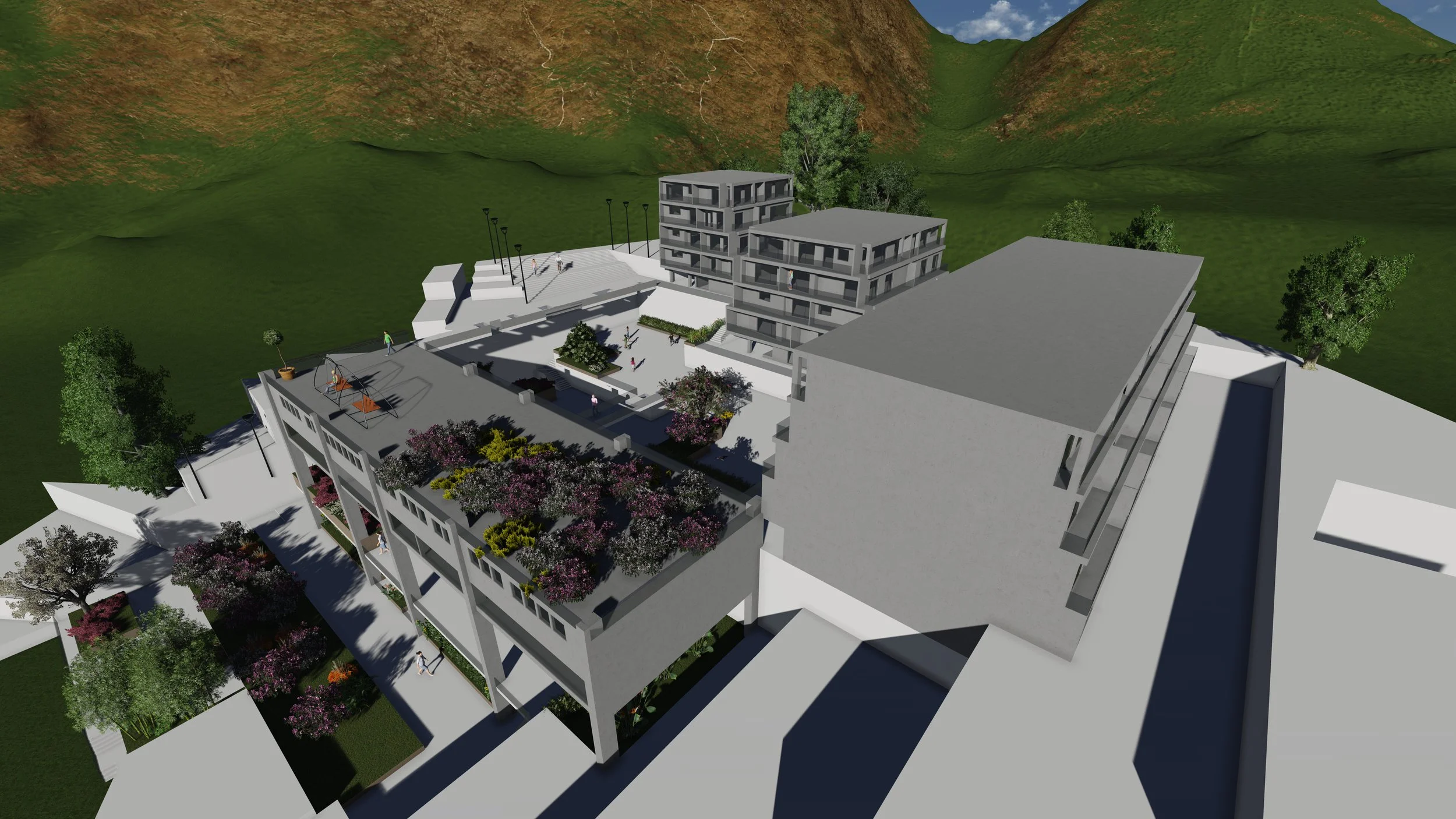 Designed to foster interaction and creativity, the School of Architecture blends academic spaces with shared gathering areas, all set within a scenic, mountain-facing campus.