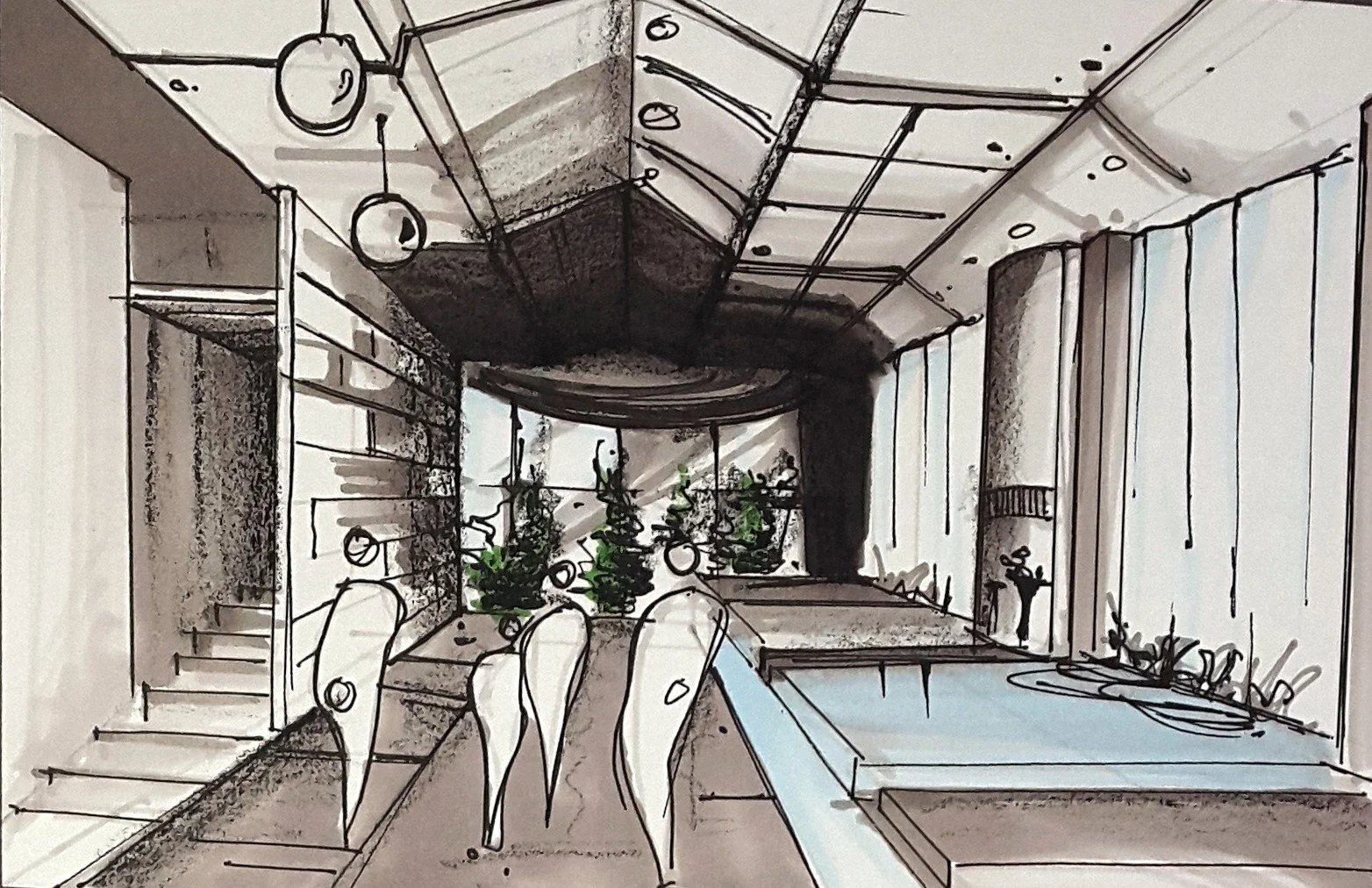 A collection of freehand drawings and architectural sketches exploring form, space, and concepts.